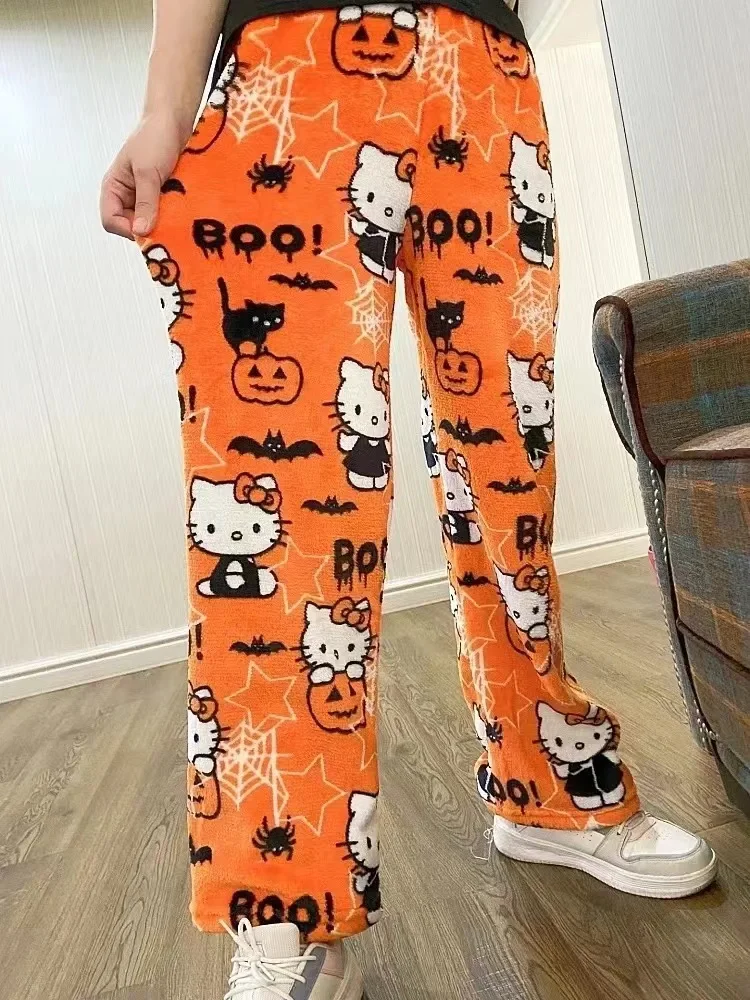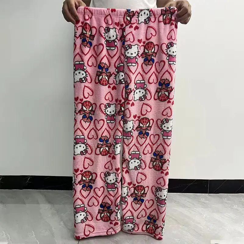 Cotton Velvet Loose Pajamas Hello Kitty Spider-Man Pajamas Long Pants Women’S And Men’S Cartoon Sleeping Casual Wear Halloween