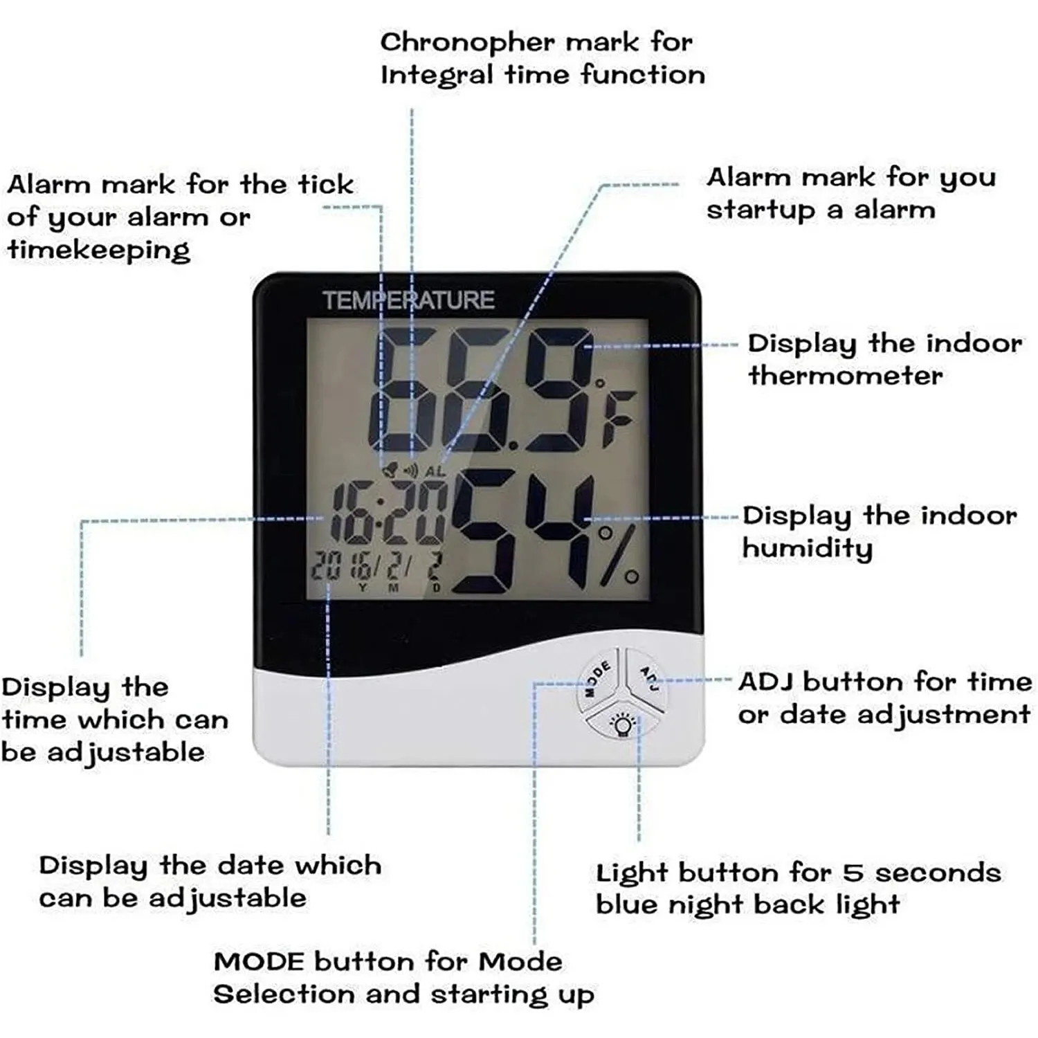 • Digital Thermometer Hygrometer Easy to read big LCD screen, Indoor room thermometer features a tabletop stand to place the temperature monitor on your counter or fixed on the wall.